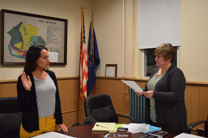At left, Candace Rodrigues is sworn in by borough secretary Tracy Burbage at a Bowmanstown Borough Council meeting in February. TIMES NEWS FILE PHOTO