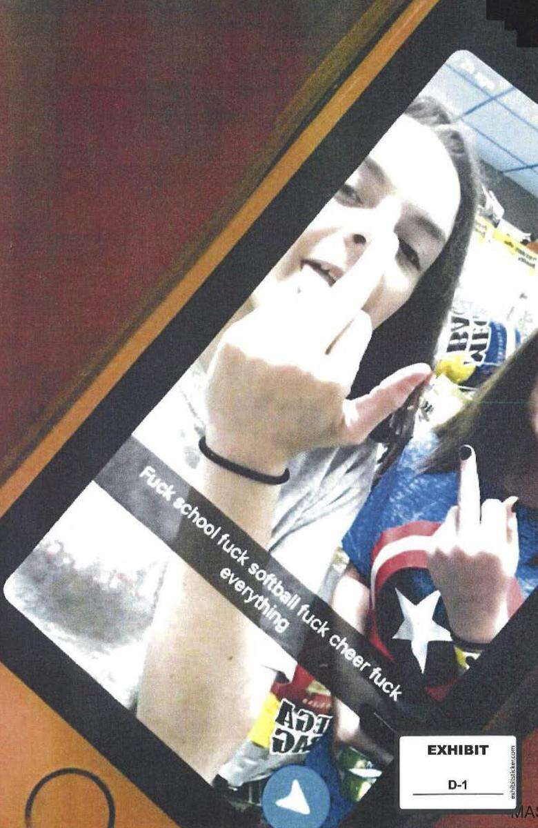 “F--- school f--- softball f--- cheer f--- everything,” Levy wrote, in a post that also contained a photo in which she and a classmate raised their middle fingers.