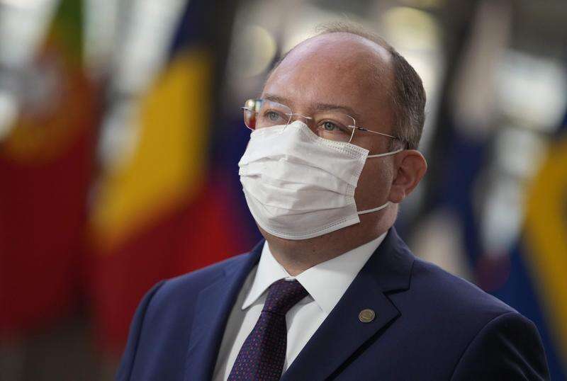 Romania's Foreign Minister Bogdan Aurescu arrives for a meeting of EU foreign ministers at the European Council building in Brussels, Monday, Jan. 24, 2022. European Union foreign ministers are aiming Monday to show a fresh display of resolve and unity in support of Ukraine, amid deep uncertainty about whether President Vladimir Putin intends to attack Russia's neighbor or send his troops across the border. (AP Photo/Virginia Mayo)