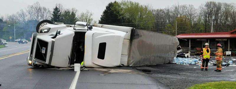 At least one person was injured Wednesday morning in a crash along Route 309 in Lynn Township. The incident occurred around 6:30 a.m. as a tractor trailer was traveling north at the intersection with Route 143. The driver went around a curve and lost control, sending the rig onto its side across the roadway onto a private lot. The trailer ruptured spilling large bottles of water throughout the scene. State police at Fogelsville are investigating the incident.