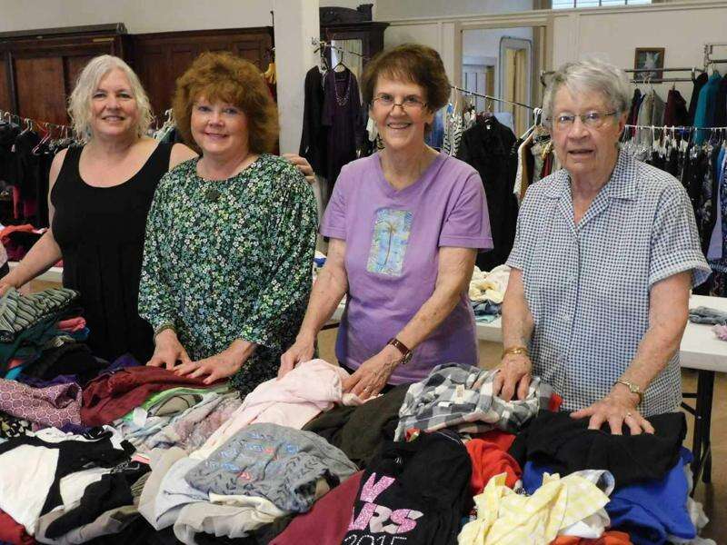 ABOVE: Volunteers from St. John's Lutheran Church in the Heights, Jim Thorpe, help at the church's annual clothing giveaway. From left, Trisha Huber, Irene Remmel, Leta Thompson, and Shirley Cherb.