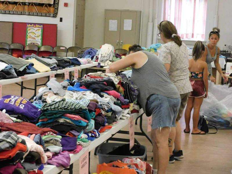 “We’ve been doing this every year for about 25 years,” said Leta Thompson, a member of the church and volunteer at the giveaway. “Each year we collect the clothing donations, then usually in July or August we make the clothing available.”