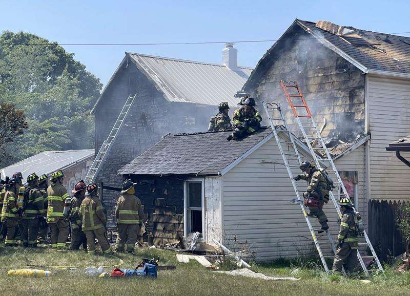Fire crews were on scene on East Market Street in Tresckow where two homes behind the post office were damaged by fire Thursday afternoon. COPYRIGHT LARRY NEFF/SPECIAL TO THE TIMES NEWS