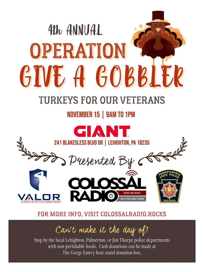 Presented by Colossal Radio, VALOR Clinic Foundation, and the Pennsylvania State Police, this year’s event will take place from 9 a.m. to 1 p.m. Wednesday at Giant Food Store in Lehighton.