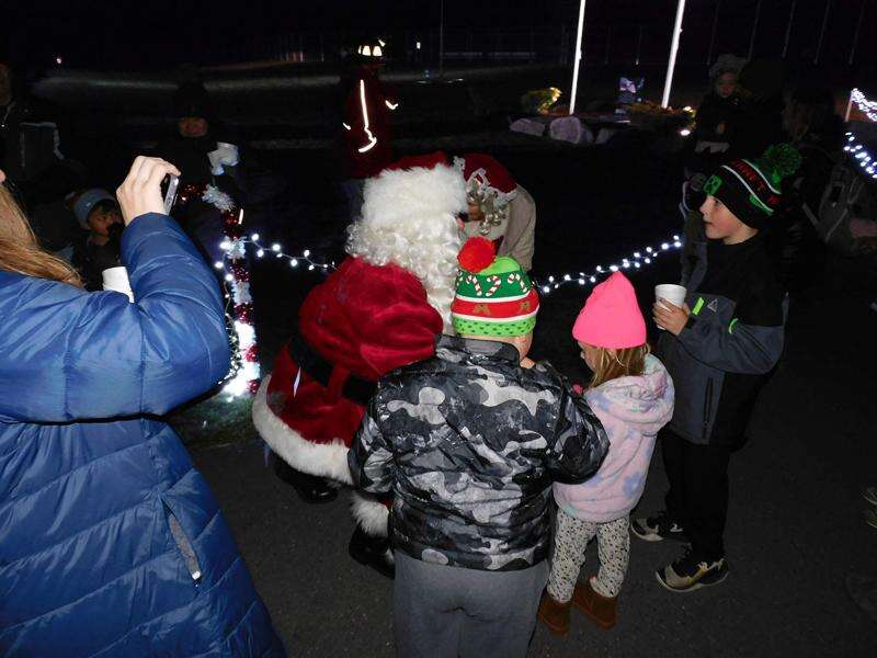 The festivities began at 5 p.m. and Santa and Mrs. Claus arrived at the park at 6 p.m., accompanied by the Penn Forest Township Volunteer Fire Department.
