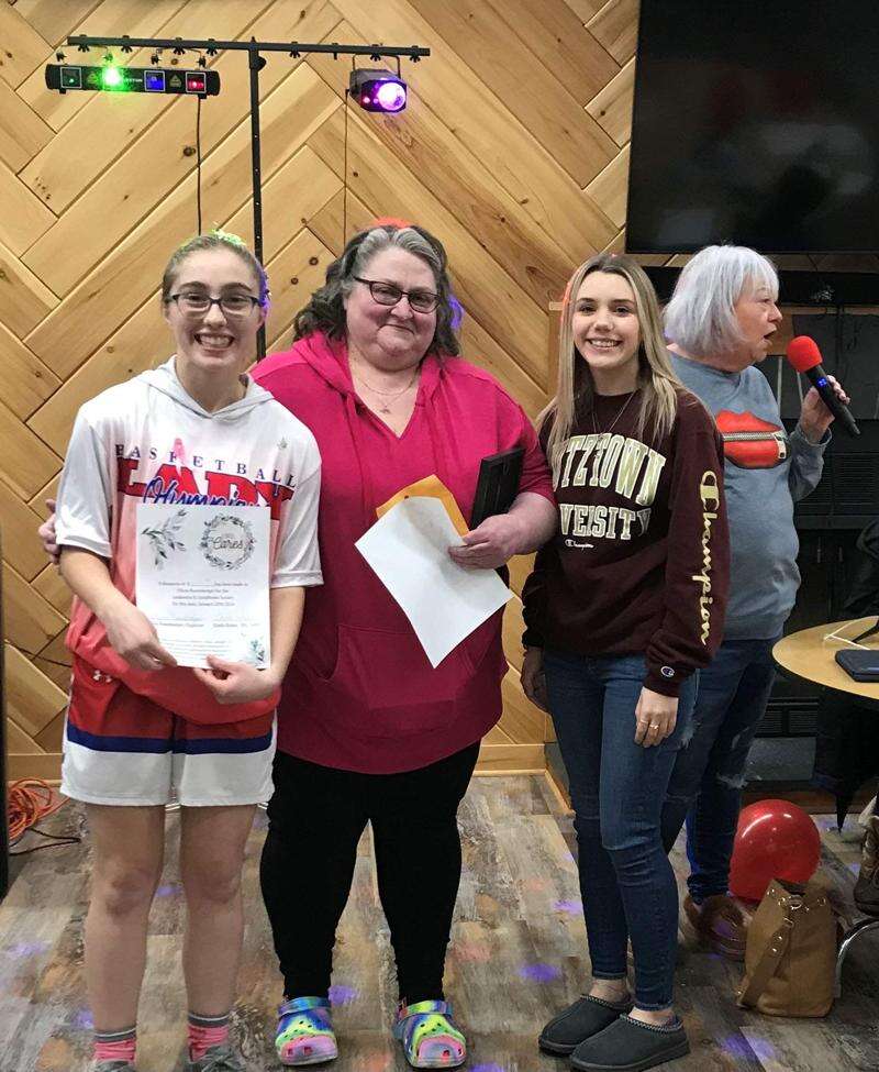 Olivia Rosenberger, a senior at Jim Thorpe High School, led the trivia rounds. Olivia and Harmony Burke are raising funds as part of “Student Visionaries of the Year” program to compete with other students to see who can raise the most funds for blood cancer.