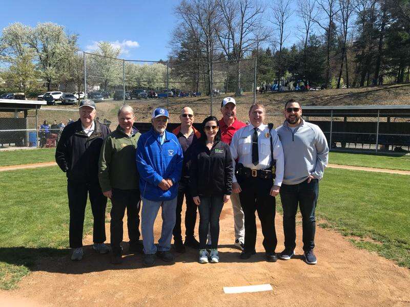 The field was recently fitted with new lights that were donated by EMD Electronics of Hometown and were installed by West Side Hammer Electric of Bethlehem at no cost to the community. Kelly Hansbury and Eric Dreyfus represented EMD Electronics at the ceremony.