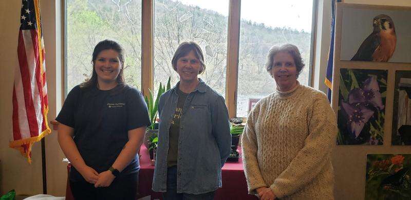 Penn State Master Gardeners held the annual plant event Saturday at the Lehigh Gap Nature Center in Slatington. Master Gardener Joe Veshinfsky coordinated the event. From left are Kira Kuehner, who did a workshop on growing herbs for beginnings; Carol Schnaiter, who taught propagation of house plants; and Sally Black, who conducted did a workshop on hydroponics. Susan Wilson, not pictured, ran a workshop on succulents. The next event for the nature center will be a sale of plants grown at the center from 9 a.m. to 2 p.m. May 18 and 19 at Country Harvest, 572 Delaware Ave., Palmerton.