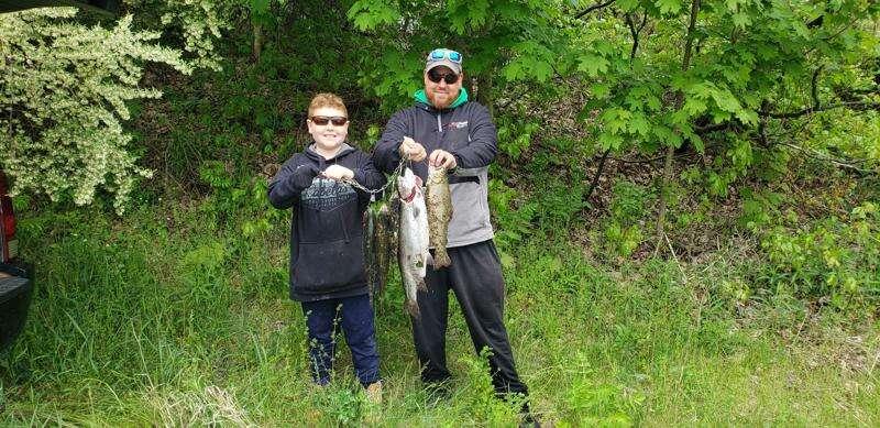 Above: Dominic Deluca and dad Chace had a great catch for their first time at the contest sponsored by the Springside Sportsmen Club at the Covered Bridge in Slatington. Dominic's biggest fish was 22½ inches and weighed 7½ pounds. They looked forward to having them for a meal.