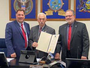 Commissioners Rocky Ahner and Michael Sofranko then spoke about their colleague, Wayne Nothstein, who has been a member of Lehighton Fire Department for over 50 years.
