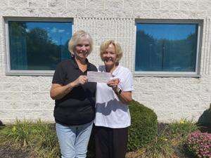 LaRae Hlavaty and Karen Alboucq of Lehighton were on hand at St. John’s Church in Mahoning Township to receive the donation.