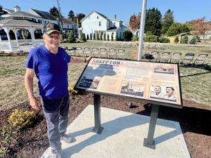 Ronnie Sando, of Beaver Meadows, stands at a commemorative storyboard plaque Sunday at the newly unveiled Sheppton community park. The park pays tribute to the famous 1963 mine tragedy and miracle in which miners David Fellin and Henry Throne were saved, but Louis Bova was never found. Sando, 87, former welder at Pagnotti Enterprises, is one of the last surviving rescuers. The East Union Township park was funded by a charitable arm of Mericle Commercial Real Estate Services, and no taxpayer money was used. DONALD R. SERFASS/SPECIAL TO THE TIMES NEWS