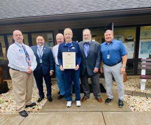 Kidder Township police Chief Matt Kuzma recognized Ralph Lennon for 60 years of service to the Lake Harmony Fire Department before Thursday’s board of supervisors meeting.