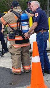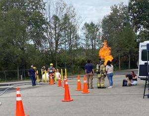 The most popular stop for kids was a “smoke” filled room, where firefighters demonstrated rescues. Outside, crews showed how they put out dumpster, car, tank and even tree fires.
