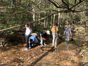 Fifth graders from West Penn Elementary School turned over rocks in Locust Creek in search of tiny critters.