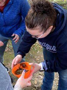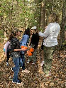 Master naturalist Sue Reier encouraged students to peek into the fallen leaves for signs of life, and Hanna Kulbitsky, a Schuylkill Conservation District educator, talked about hibernation. Frank Snyder, retired forester and conservancy volunteer, spoke about trees and forestry.