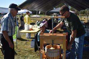 Park committee members used a hand-crank cider press to make the apple cider, which attendees could sample for free. Each year, the committee borrows the press from Chestnuthill Township.