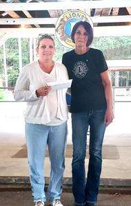 RIGHT: Lion President Tina Dougherty, right, presents Colleen Killian, executive director of the Tamaqua Adult Day Care Center, with a check.