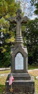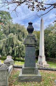 The spot marks the final resting place of Cornelia Dingman Brodhead, who died in 1883 and was the mother of Albert Brodhead, a wealthy businessman and state senator buried in the cemetery in 1938.