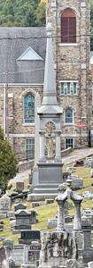 Many of the large family plots have large stone memorials and towering obelisks, but the largest memorial is that of Benjamin F. Barge, an educator who made his fortune in grain and lumber in Mauch Chunk.