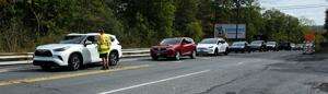 The incident occurred around 2 p.m. on the Mansion House hill. Police and Mahoning Valley firefighters have the road closed on a very busy fall foliage day. COPYRIGHT LARRY NEFF/SPECIAL TO THE TIMES NEWS