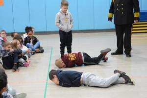 McArdle had students demonstrate the stop, drop and roll technique if clothing catches fire.