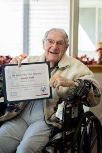 On Friday, members of MapleShade Meadows in Nesquehoning, The Care Team Hospice and family friends gathered to honor the World War II veteran who is still as sharp as a tack and brightens up a room with his contagious smile when he rolls in.