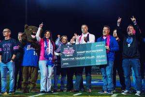 Pleasant Valley High School was recognized Friday night as one of T-Mobile’s national “Friday Night 5G Lights” winners during a ceremony at Bears Stadium in Brodheadsville Oct. 10. Representatives from the school, district, and community joined T-Mobile officials for the on-field presentation of a $25,000 grant — one of just 25 awarded nationwide. Pleasant Valley, the only finalist from Pennsylvania, previously earned a $5,000 “5K Friday” award earlier this season. The funding will support future athletic and facility upgrades as the school continues competing for the program’s $1 million grand prize. This is the voting page specific to Pleasant Valley High School: Vote for Pleasant Valley. MATT BREINER/SPECIAL TO THE TIMES NEWS