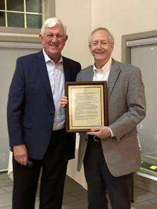 At a board dinner, Bill Stulginsky ’69, treasurer, presented Reilly with a proclamation recognizing his leadership and commitment.