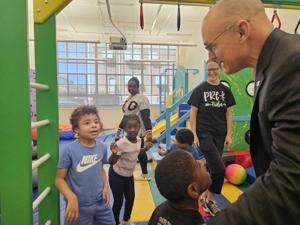 Easterseals executive Tim Kerrihard talks to students at the nonprofit’s north Philadelphia community center on Sept. 19. STEPHEN CARUSO/SPOTLIGHT PA