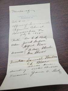 On Saturday, the Emmanuel UCC Church in Bowmanstown peered into local history and a slice of life from about 120 years ago. Judy Hoffman, president of the church’s Consistory, opened a time capsule that had been a part of the church since circa 1905.