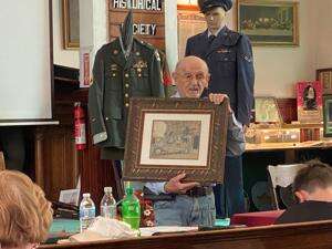 On Sunday, Nesquehoning Historical Society was filled with several people looking to see what their heirlooms and treasures were worth. The society welcomed George Blum, an antique expert and appraiser, to come in and talk about these treasures, providing a little insight on each piece, which included jewelry, a Franz Kline drawing from when he was beginning his artistic career, a Martin guitar and lots of China and crystal. Seen here, Blum is holding an old picture from the Coaldale fire department. All proceeds from the event went toward the borough’s America250 celebrations in 2026. AMY MILLER/TIMES NEWS