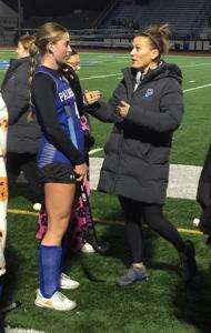 The Blue Bomber head field hockey coach, who played goalie in college, decided to don the pads at practice and let her girls fire away.