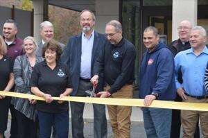 Above: Jim Thorpe Borough Council President Greg Strubinger cuts the ribbon Tuesday to mark the reopening of Memorial Hall and the new municipal complex. Also pictured, from left, are Brad Hurley of State Sen. Dave Argall’s office; Assistant Borough Manager Brooke Klotz; Sen. Dave Argall; Councilwoman Joanne Klitsch; Council member Mike Yeastedt; Mayor Eric Cinicola; Father Ronald Minner; and Council member Ted LaRizzio. JARRAD HEDES/TIMES NEWS