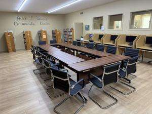 The second addition to the library is a newly renovated public room that features a conference table and chairs, new flooring and paint, several donated books shelves, and several computers and tables that the public will be able to use. The library offers internet access.