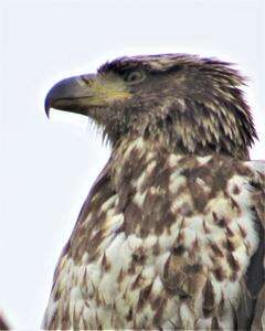 Birds of prey (hawks, falcons, vultures) and this juvenile bald eagle have very sharp, hooked upper bills to allow them to tear apart their prey.