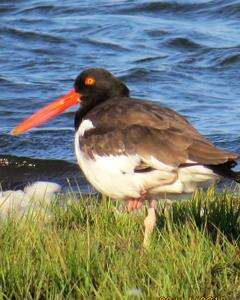 The American oystercatcher, becoming more uncommon, has a 10- or 11-inch-long heavy bill. It uses it to pry open bivalves (clams, oysters) or to pound them open.