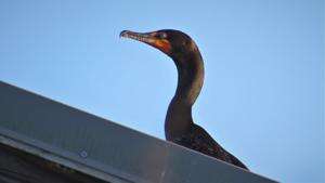 Sometimes remaining for a few days each spring and fall on our area lakes, the double-crested cormorant swims underwater to catch fish. Its hooked bill helps it hold the fish as it turns it around to swallow whole, head-first.