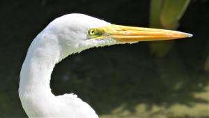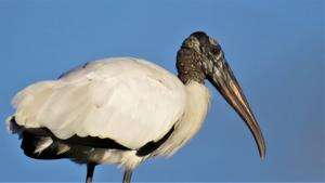 With a “beak” only a mother could love, the wood stork’s heavy, 9-inch bill is used to grab crabs, etc., in southern Florida waterways.