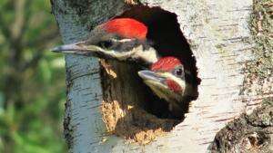 All woodpeckers have amazingly strong and hard bills. Young pileated woodpeckers’ bills grow rapidly while they are still in the nesting cavity. That’s probably an advantage as the parents push the food into the juvenile birds’ mouths.