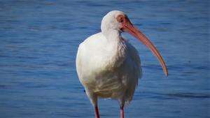 The white ibis has a very curved bill, which it uses in the muck to “swish back and forth” to locate prey hiding there.