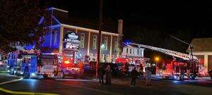 Fire companies from Schuylkill and Carbon counties are on scene of a multi alarm fire at the apartment by the Arts Center in Tamaqua. The blaze was reported around 10:30 p m. of a home on fire with entrapment in the 100 block of Pine Street. When firefighters arrived on scene they found two people trapped on a first floor roof with heavy flames showing out of the rear of the two story wood frame dwelling.