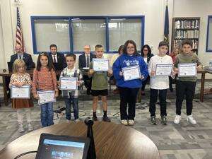 Towamensing Elementary Students of the Month for October were honored at last week’s Palmerton Area School Board meeting. From left are Lillian Sampson, kindergarten; Madeline Olewnik, first grade; Liam Keller, second grade; Bo Knepper, third grade; Emily Gouldner, fourth grade; Levi Powell, fifth grade; and Benjamin Yaroslavsky, sixth grade. JARRAD HEDES/TIMES NEWS
