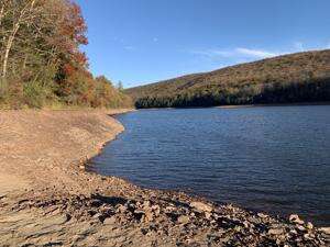 Water levels at the lake at Tuscarora State Park in Barnesville are below normal following a September drawdown for work at the dam’s sluice gate.