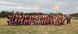 After the group photo, varsity head coach Tom McCarroll led a massive huddle with players of all ages, offering words of encouragement as the varsity team prepared for its District 11 Class 3A playoff game against Blue Mountain the following night, while the booster squads readied for their wild card playoff games over the weekend.