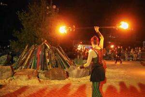 The evening culminates with a bonfire, fire performances, and a drone show finale.