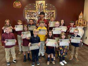 St. Jerome Regional School recently announced the Christian of the Month students for October 2025. They are, front, from left, Mitchell Hinkle, Kindergarten Gold; Eliana Ripa, Kindergarten Blue; Rosalee Schadler, Preschool; and Wyatt Krajcirik, First Grade Blue. Middle row, Jaxon Loprete, First Grade Gold; Brenna Mayernick, Second Grade Gold; Cody Morris, Grade 3; and Alexa Davis, Second Grade Blue. Back row, Miranda Hartz, Fourth Grade Blue; Vitaliy Chepelskyy, Grade 7; Carlos Martinez, Sixth Grade Blue; Alex Lin, Eighth Grade; Landen Yanett, Sixth Grade Gold; Alexandra Lutz, Grade 5; and George Pinkey, Fourth Grade Gold. The Christian of the Month Award recognizes students who display good character on a consistent basis and serve as student role models throughout the month. CONTRIBUTED PHOTO