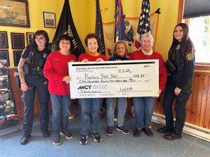 The Weatherly Police Officers Association presented a check to the American Legion Auxiliary Unit 360 to cover the cost of turkeys for the unit’s Veterans Day turkey dinner. The auxiliary thanked the association for the donation and supporting veterans. Standing with the check are, from left, Officer Sofia Hantz, auxiliary members Georgia Farrow, Donna Thomas, Theresa D’Andrea, Georgeann Herling, and Officer Ashley Harris. CONTRIBUTED PHOTO