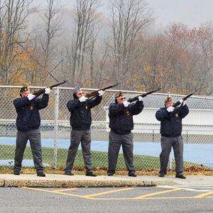 Left: Veterans, from left, Dave Clemson, Brad Hosler, Jim Murphy and Dave Meredith take part in the Veterans Day event held outside the Tamaqua Area High School. CONTRIBUTED PHOTO