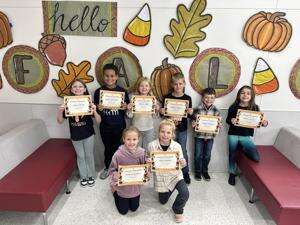 Lehighton Area Elementary Center recently announced the October students of the months for third through fifth grades. Third grade recipients are, front, from left, Hannah Mooney and Nora Bonser. Second row, Logan Fisher, Quinn Dunchack, Abigail Erney, Brooks Kirsch, Thomas Kennedy and Sabine Mickey. CONTRIBUTED PHOTOS